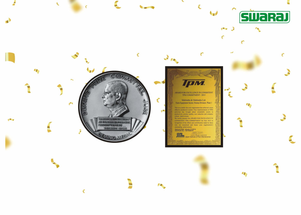 In 2012, Swaraj became the 2nd company in the world to bag the prestigious Deming Prize. 2013 witnessed Swaraj win the TPM Excellence Award from the Japan Institute of Plant Maintenance.